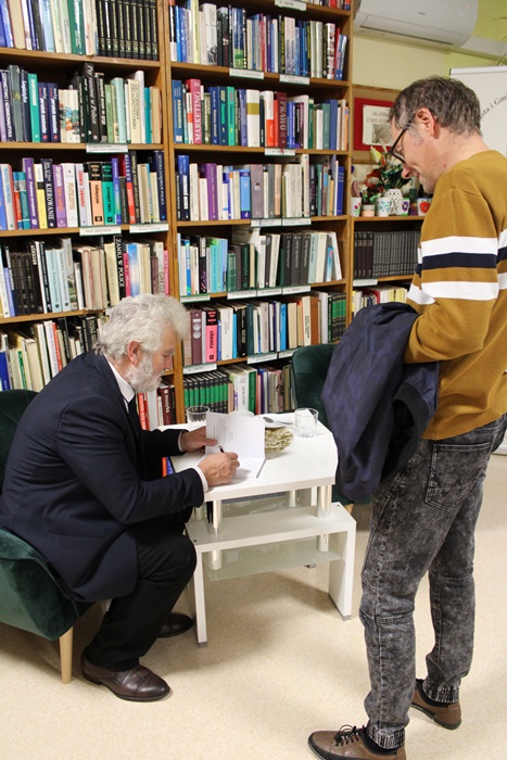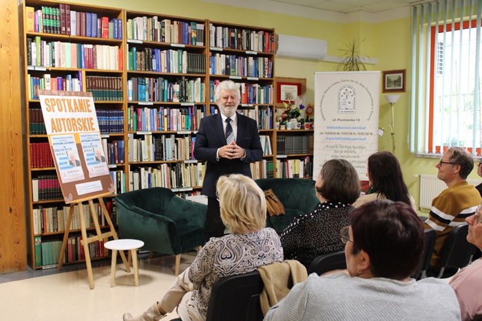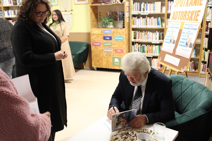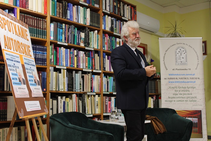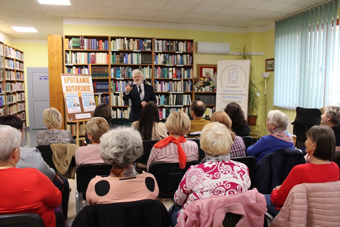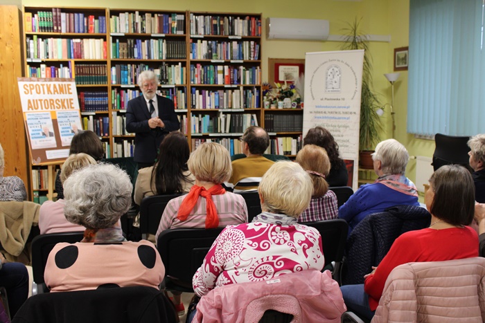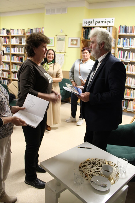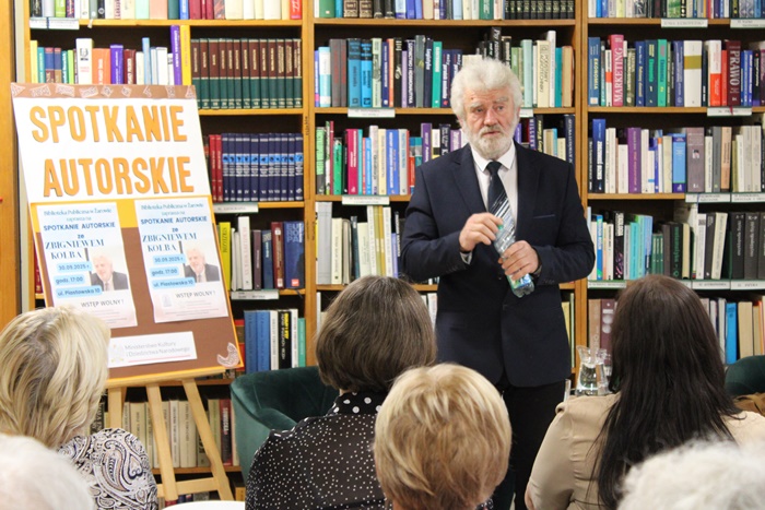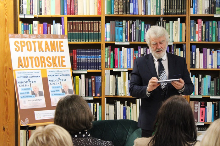 30 września 2025 r. o godz. 17:00 w siedzibie Biblioteki miało miejsce spotkanie ze Zbigniewem Kołbą, autorem książek: „Krioterapia. To warto wiedzieć”, „Znajdź mnie i kiedyś odwiedź”. Podczas spotkania pisarz i fizjoterapeuta mówił o leczniczym działaniu niskich temperatur, sposobach leczenia bezsenności, a także o uciążliwych problemach zdrowotnych. W jasny sposób opowiadał, na czym polega krioterapia i jakie ma zastosowanie. Udzielił również wskazówek związanych z oddychaniem, które pomagają przy bezsenności. Zbigniew Kołba uświadomił słuchaczom, dlaczego minerały i witaminy nie są przyswajane przez organizm, mimo że mogą być spożywane regularnie oraz jak bardzo są ważne w życiu człowieka. Równie istotną rolę pełnią zioła, które przy odpowiednim stosowaniu mają zbawienny wpływ na organizm człowieka. Wiele porad znajdą Państwo w kolejnej książce Zbigniewa Kołby pt.: „Morsowanie jest wykonalne… Kiedy?”, którą można było zakupić po spotkaniu.