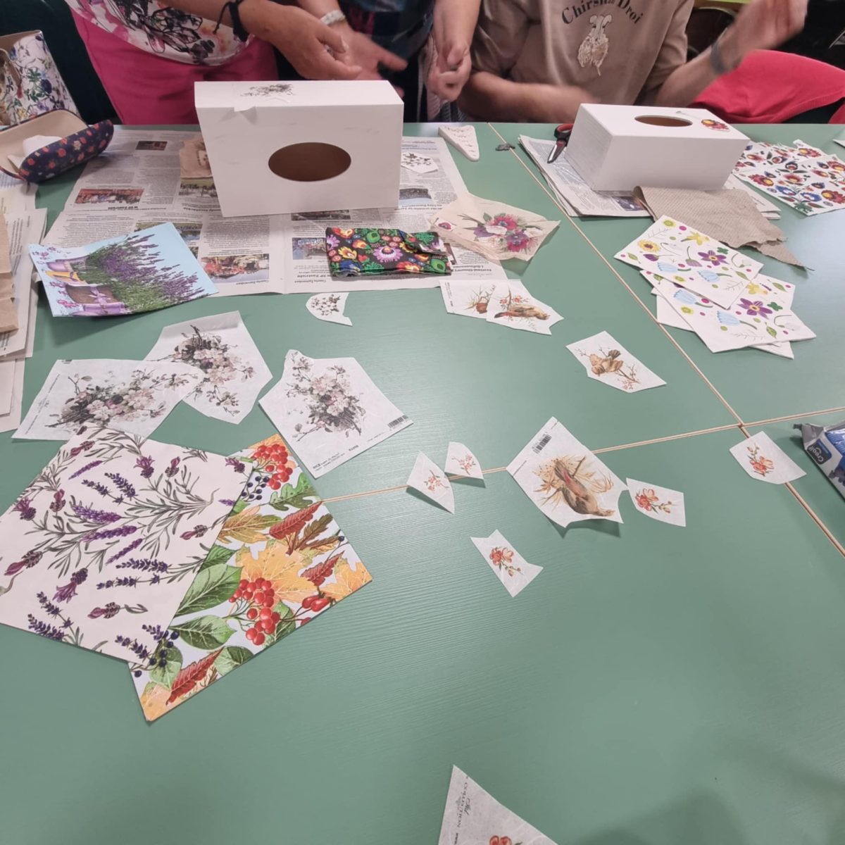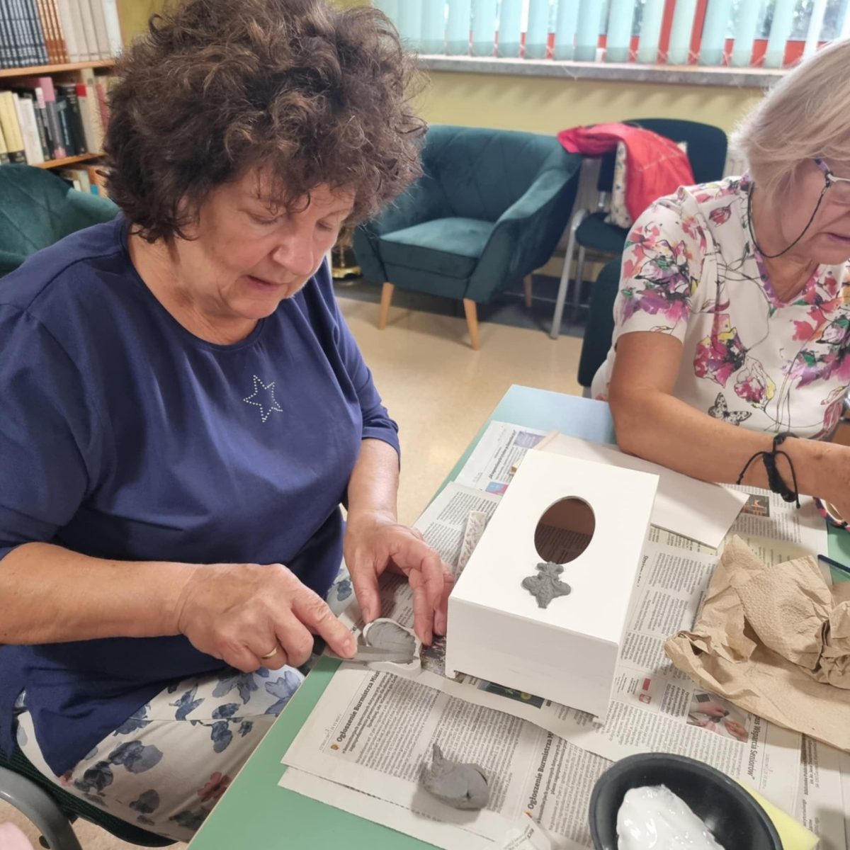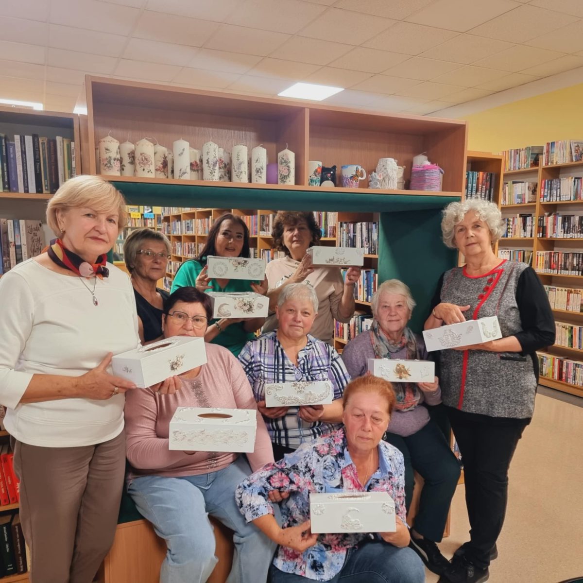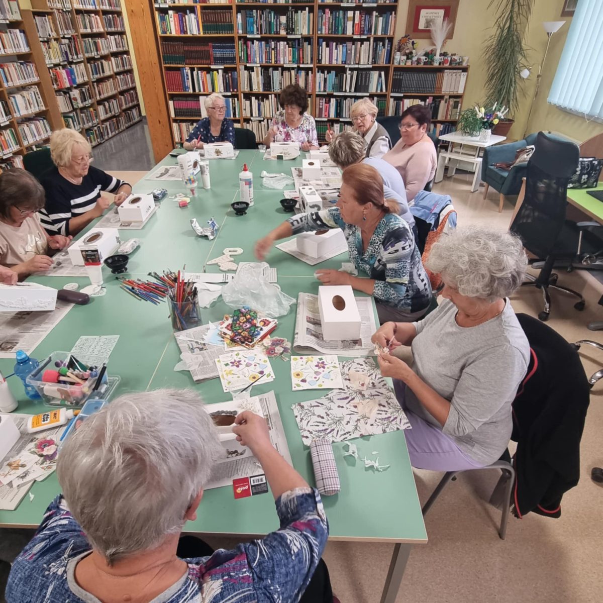 Przez ostatnie cztery spotkania uczestnicy „Akademii Umiejętności” wykonywali chusteczniki dekorowane techniką decoupage. W trakcie zajęć przygotowali drewniane pudełka do dalszej pracy poprzez szlifowanie i gruntowanie powierzchni. Wybierali motywy, uczyli się właściwie komponować wzory oraz przenosić je na przygotowaną powierzchnię. W kolejnych etapach utrwalali dekoracje warstwami lakieru. Zakończenie cyklu pozwoliło zaprezentować gotowe prace, ukazując rozwój umiejętności twórczych i zaangażowanie uczestników. Wspólna praca sprzyjała integracji i rozwijaniu umiejętności manualnych, a finalne prace potwierdziły duże zaangażowanie grupy. Warsztaty umożliwiły rozwijanie kreatywności, poznanie technik dekoratorskich i wykonanie estetycznych prac końcowych.
