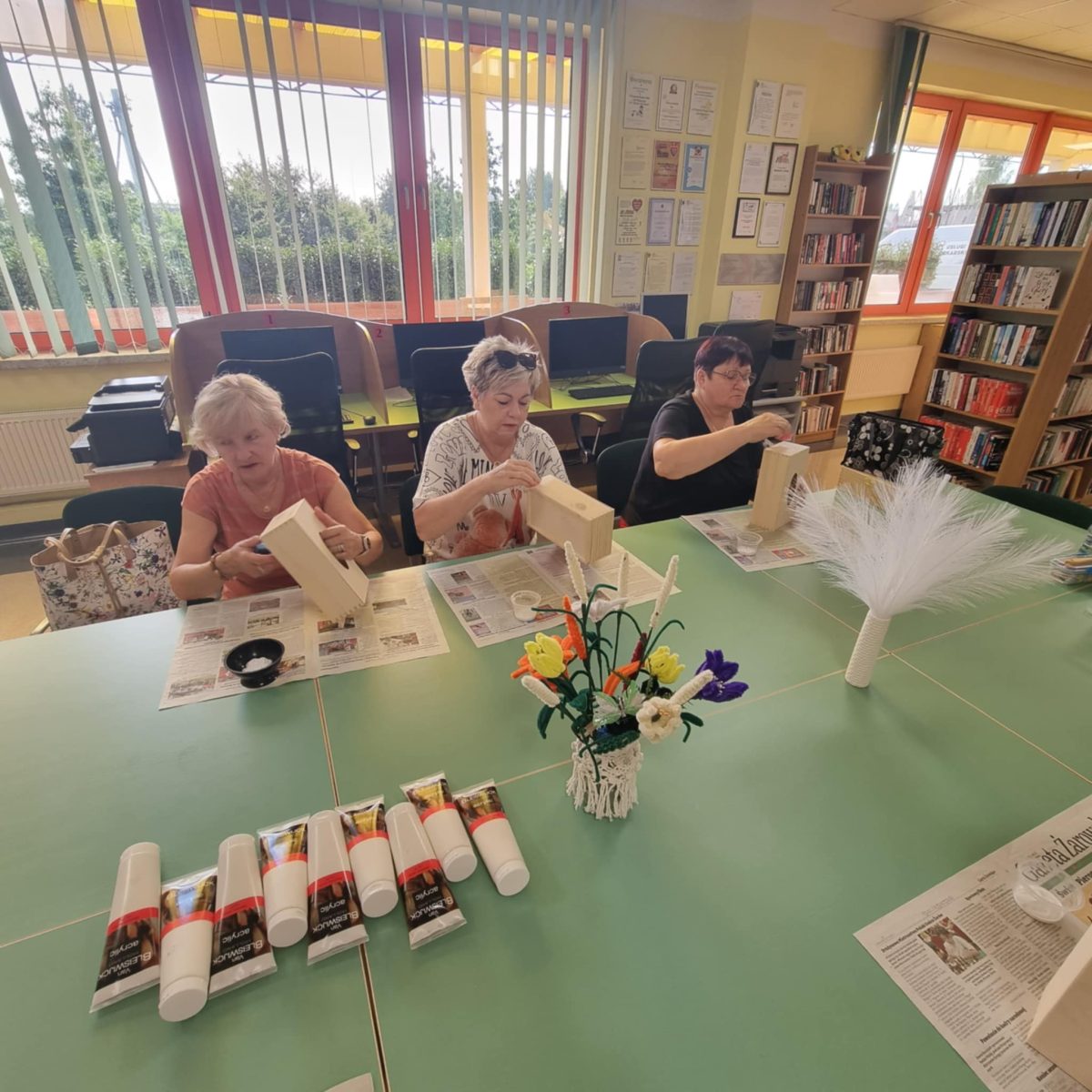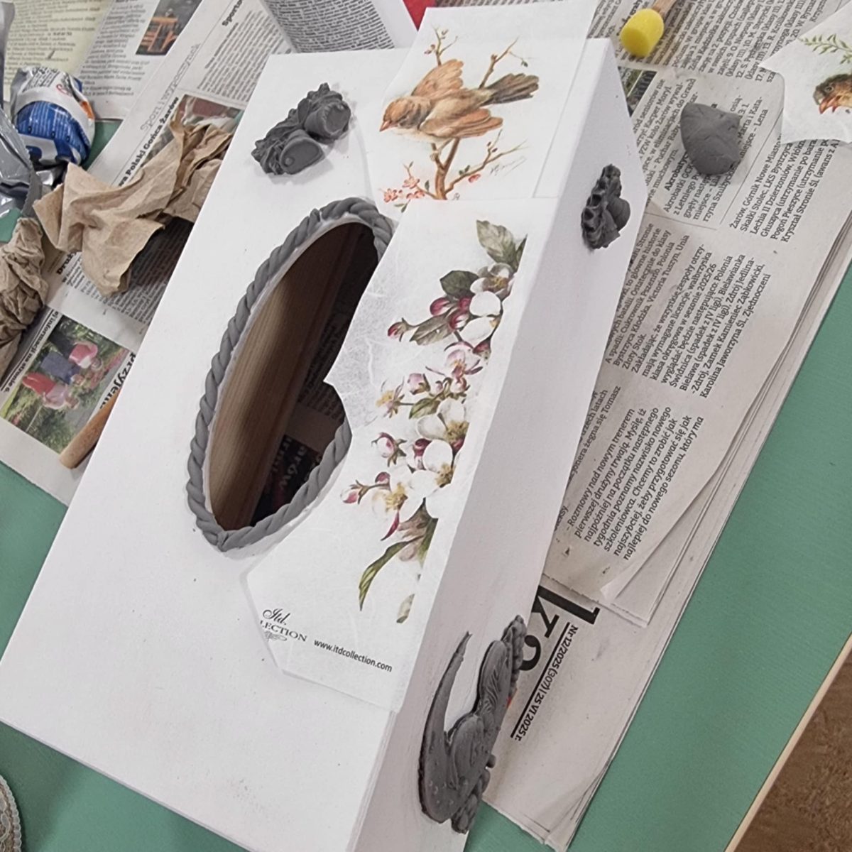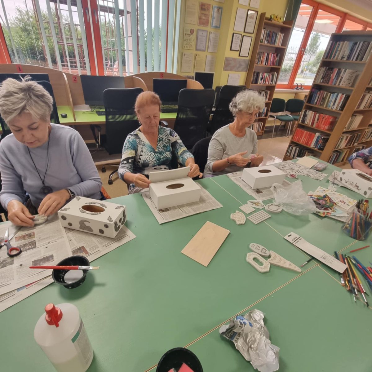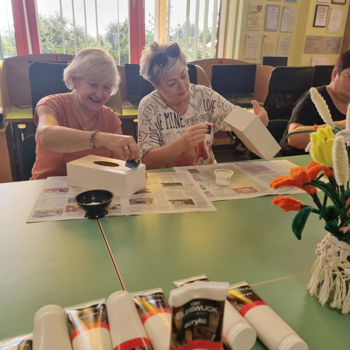 Przez ostatnie cztery spotkania uczestnicy „Akademii Umiejętności” wykonywali chusteczniki dekorowane techniką decoupage. W trakcie zajęć przygotowali drewniane pudełka do dalszej pracy poprzez szlifowanie i gruntowanie powierzchni. Wybierali motywy, uczyli się właściwie komponować wzory oraz przenosić je na przygotowaną powierzchnię. W kolejnych etapach utrwalali dekoracje warstwami lakieru. Zakończenie cyklu pozwoliło zaprezentować gotowe prace, ukazując rozwój umiejętności twórczych i zaangażowanie uczestników. Wspólna praca sprzyjała integracji i rozwijaniu umiejętności manualnych, a finalne prace potwierdziły duże zaangażowanie grupy. Warsztaty umożliwiły rozwijanie kreatywności, poznanie technik dekoratorskich i wykonanie estetycznych prac końcowych.