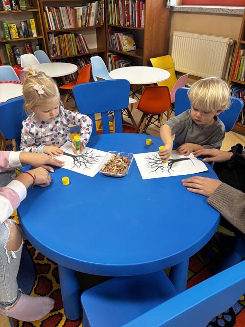 Odbyło się pierwsze spotkanie Maluszkowej Grupy Zabawowej, które wprowadziło najmłodszych w nowy rok pełen radości i wspólnej zabawy. Podczas zajęć dzieci wesoło powtarzały kolory, wykorzystując do tego Chustę Klanzy, co sprawiło im wiele frajdy i pomogło utrwalić znajomość barw. Następnie maluszki wysłuchały uroczej opowieści „Kubuś Puchatek. Drzewo dla Sowy”, po której przyszedł czas na część plastyczną. Dzieci tworzyły swoje drzewka, a zamiast tradycyjnych liści wykorzystały… obierki z temperowanych kredek, które nadały pracom wyjątkowego uroku i koloru. Na zakończenie spotkania uczestnicy oddali się swobodnej zabawie – na dywanie budowali z klocków domek dla Sowy, rozwijając przy tym wyobraźnię i współpracę w grupie. Pierwsze zajęcia upłynęły w radosnej atmosferze i z pewnością zapowiadają wiele kreatywnych spotkań w nowym cyklu Maluszkowej Grupy Zabawowej.