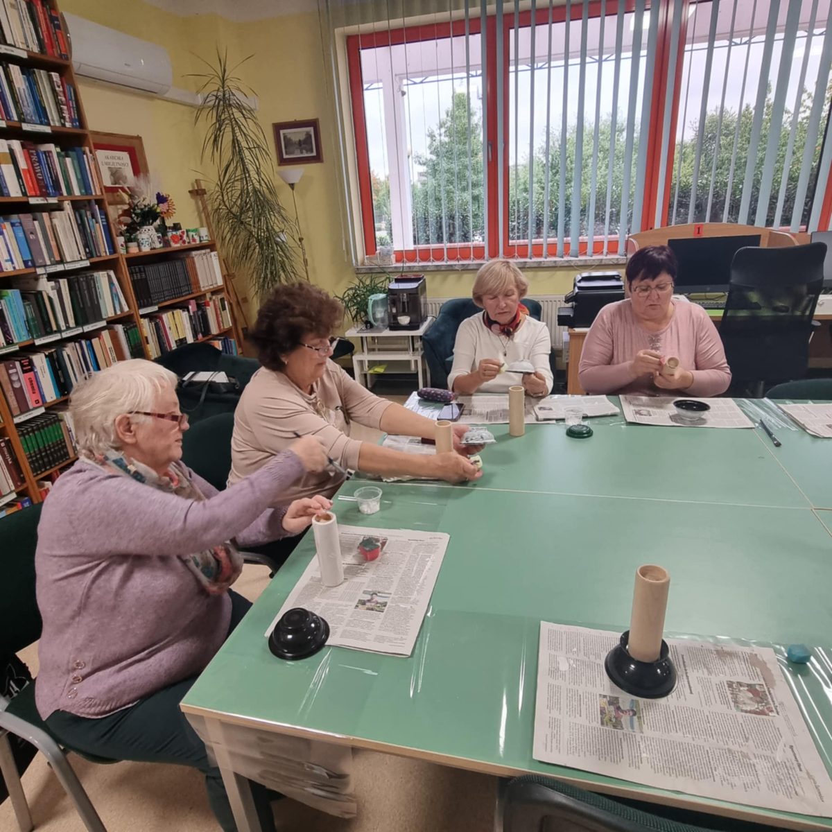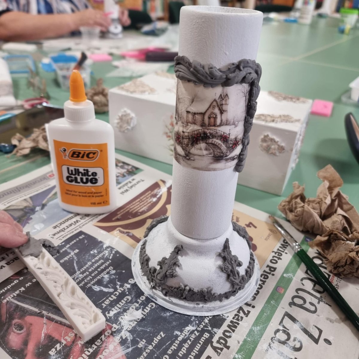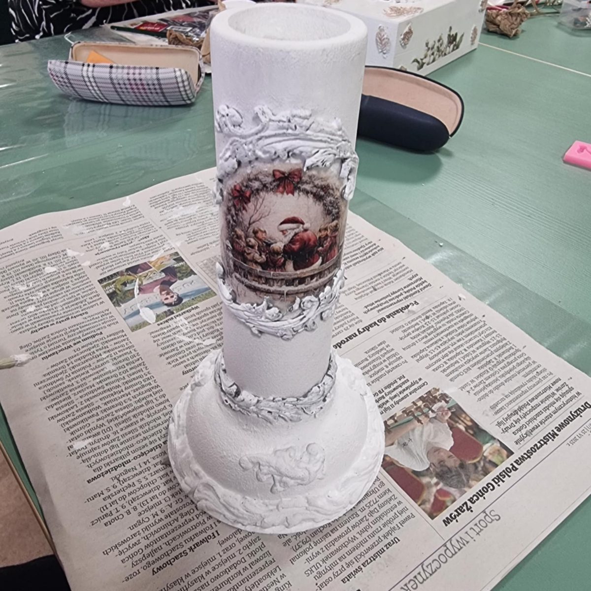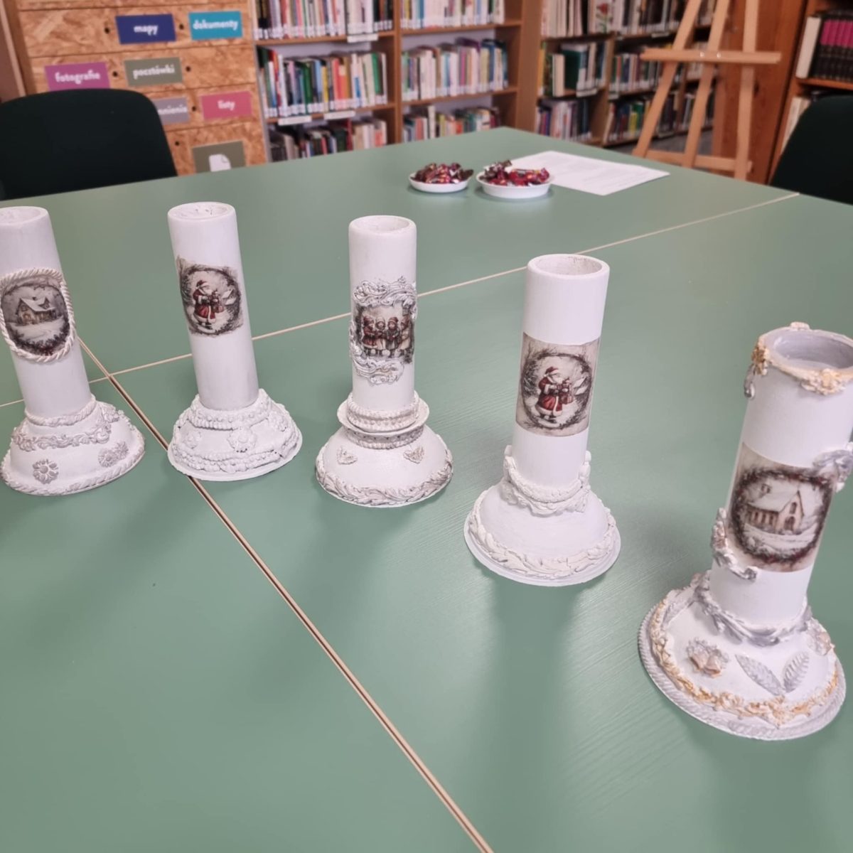 Przez dwa kolejne spotkania uczestnicy „Akademii Umiejętności” wykonywali świeczniki dekorowane techniką decoupage.