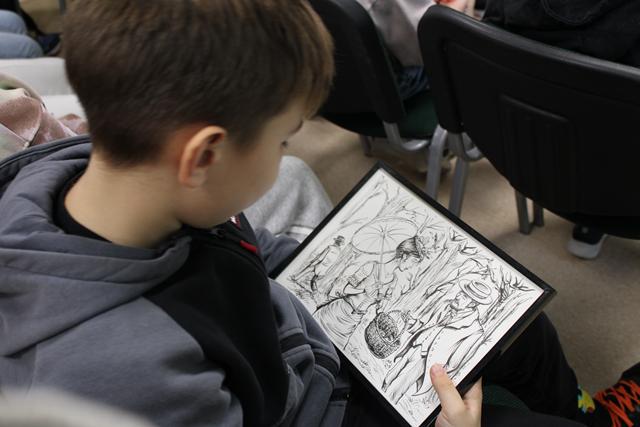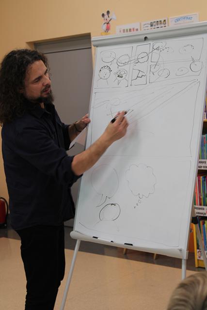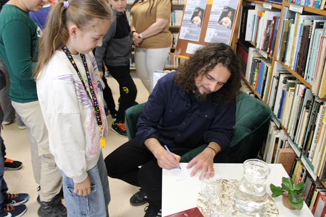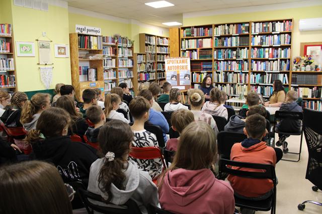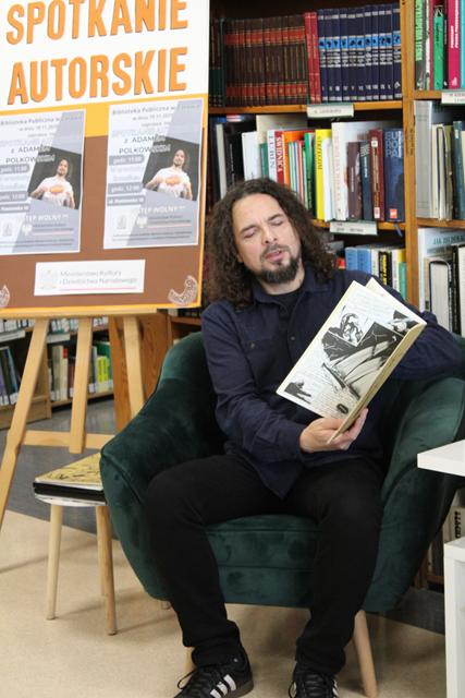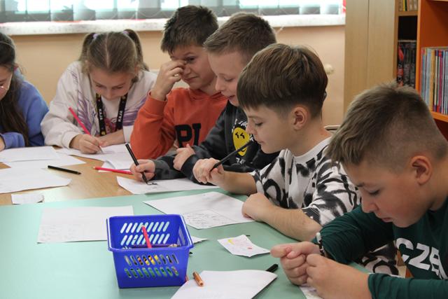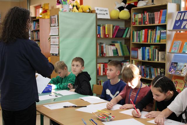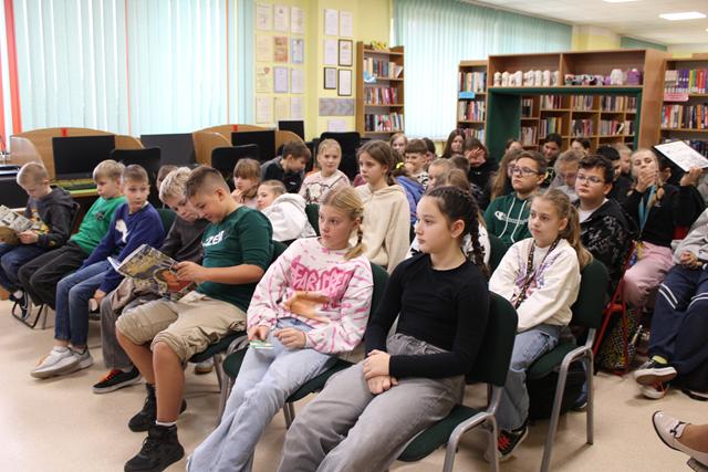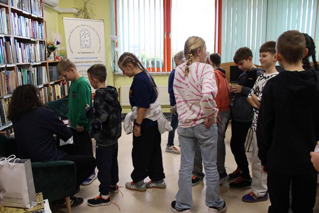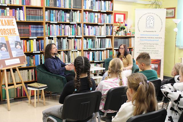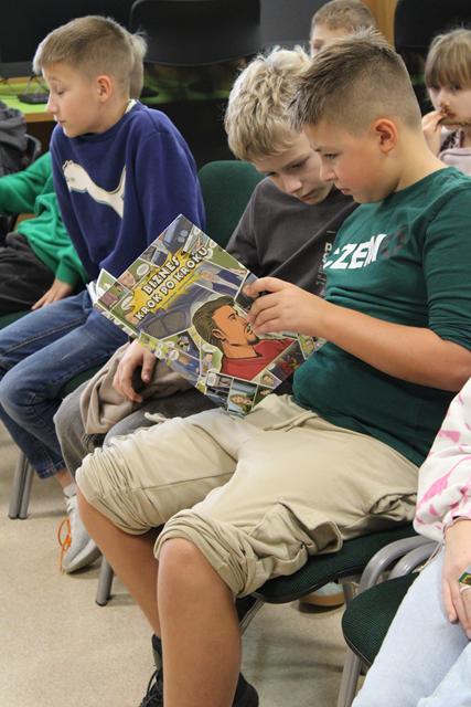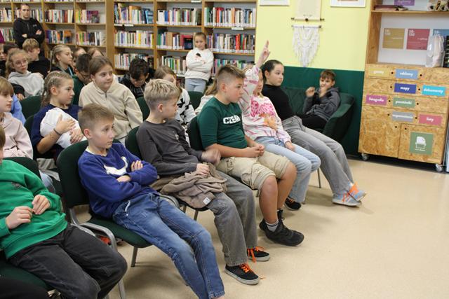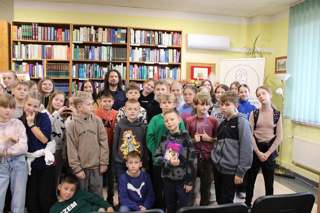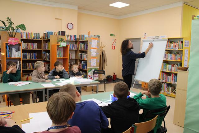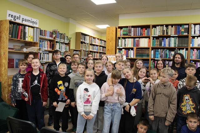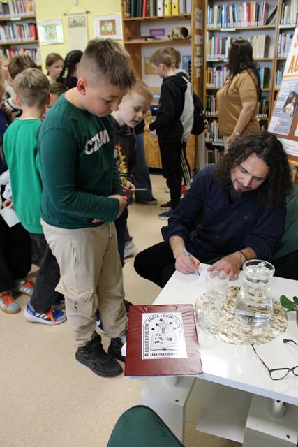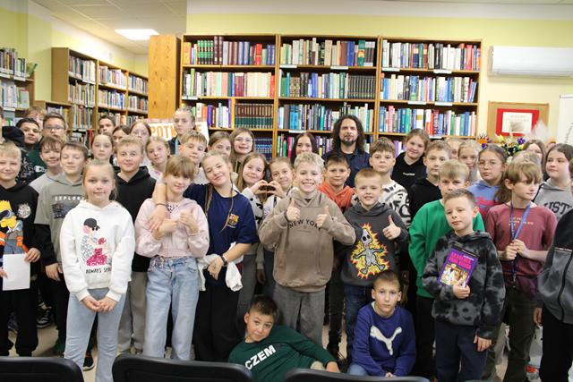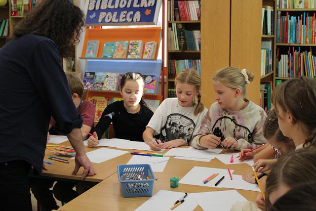 W naszej Bibliotece odbyło się wyjątkowe spotkanie autorskie z Adamem Polkowskim, znanym rysownikiem komiksowym, ilustratorem i storyboardzistą. Wydarzenie poprowadziła Dyrektor Biblioteki, Pani Wioletta Kwiatkowska, a jego uczestnikami byli uczniowie ze Szkoły Podstawowej im. Jana Brzechwy w Żarowie. Już od pierwszych chwil dało się wyczuć ogromne zainteresowanie młodych odbiorców, którzy z zaciekawieniem słuchali o kulisach pracy twórcy komiksów. Adam Polkowski opowiadał o swojej artystycznej drodze, o tym, jak narodziła się jego pasja do rysunku i w jaki sposób powstają bohaterowie, których później spotykamy na kartach jego komiksów. Uczniowie dowiedzieli się, jak wygląda praca nad storyboardem przygotowywanym do komiksu, oraz dlaczego to właśnie pierwsze szkice są tak ważnym fundamentem całego projektu. Autor z ogromnym zaangażowaniem odpowiadał na pytania dzieci, mówiąc o źródłach inspiracji, radzeniu sobie z twórczą blokadą, budowaniu emocji za pomocą rysunku oraz o codziennych wyzwaniach pracy ilustratora. Po części rozmownej odbyły się warsztaty komiksowe, które wywołały ogromny entuzjazm uczestników. Dzieci pod okiem autora mogły stworzyć własne miniaturowe komiksy — od pierwszego pomysłu, poprzez szkicowanie, aż po dopracowanie kadrów i dymków dialogowych. W bibliotece szybko zapanowała twórcza atmosfera; uczniowie z zapałem tworzyli bohaterów, wymyślali historie i uczyli się, jak poprzez rysunek pokazać emocje, dynamikę oraz przebieg wydarzeń. Adam Polkowski podchodził do każdego z uczestników, udzielając wskazówek i zachęcając do odwagi w wyrażaniu własnych pomysłów. Spotkanie zakończyło się wśród uśmiechów i wielu inspirujących rozmów. Dzieci wychodziły z biblioteki z własnoręcznie wykonanymi komiksami i dużą dawką motywacji do dalszej twórczej pracy. Było to wydarzenie, które nie tylko pobudziło wyobraźnię młodych twórców, ale także pokazało, że historia narysowana jedną kreską może przerodzić się w coś naprawdę niezwykłego.