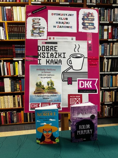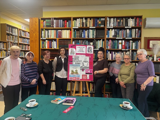 22 stycznia odbyło się pierwsze w tym roku spotkanie DKK. Rozpoczęłyśmy go od omówienia książki „Kolor Purpury” Alice Walker. Przyniosła ona swej autorce duży rozgłos i nagrodę Pulitzera. Powieść, która, przerywając zmowę milczenia wokół przemocy domowej, wywołała obyczajową burzę. Historia kobiet, które poprzez ból i nieustanną walkę ukazały ogromny hart ducha i bohaterską odwagę. Na podstawie „Koloru purpury”  w 1985 r. Steven Spielberg nakręcił nominowany do Oscara w 11 kategoriach film z Whoopi Goldberg i Oprah Winfrey w rolach głównych. Natomiast w 2023 r. powstała muzyczna adaptacja tej powieści. Jest to niezwykle pasjonująca lektura, opowiadającą o rzeczach, które się działy, a może i dzieją nadal w wielu miejscach na świecie. Po trudnej emocjonalnie lekturze, przyszedł czas na lżejszą powieść. A mianowicie rozmawiałyśmy o książce „Słowo się rzekło, Madame” Magdaleny Kordel, która ma talent do opowiadania wzruszających historii.  Ta opowieść to ciepła, refleksyjna i pełna subtelnego humoru lektura o nowych początkach, rodzinnych więziach i sile przyjaźni. Opisuje nadmorski krajobraz oraz życie w małej społeczności. Autorka nie ucieka jednak o trudnych tematów oraz wyborów, z którymi muszą mierzyć się bohaterowie powieści. W naszej Bibliotece,  w miesiącu maju, odbędzie się spotkanie autorskie właśnie z pisarką Magdaleną Kordel. Po omówieniu zaplanowanych na to spotkanie lektur, rozgorzała gorąca dyskusja na tematy ogólnospołeczne. Zarówno te, zawarte w lekturach jak i wiele innych z życia wziętych. W ciepłej, rodzinnej atmosferze czas minął nam błyskawicznie.