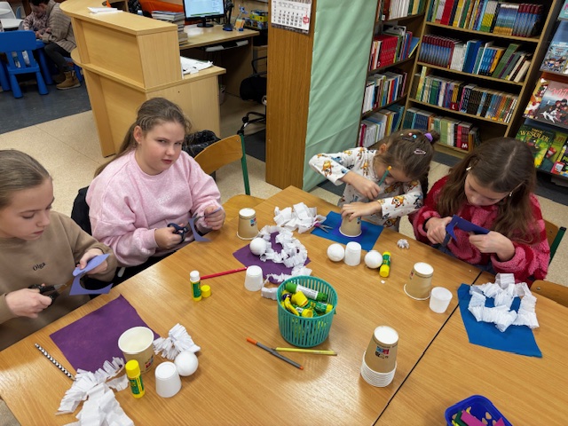 Podczas warsztatów zwrócono uwagę na znaczenie świadomego gospodarowania odpadami oraz możliwości ponownego wykorzystania materiałów poprzez twórcze działania. Zajęcia przebiegały w atmosferze zaangażowania i radości z tworzenia, a wykonane prace stały się nie tylko piękną ozdobą, lecz także symbolem ekologicznego myślenia i kreatywności dzieci.