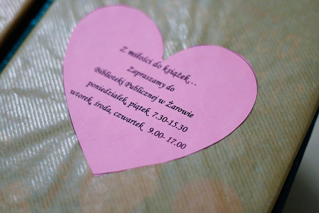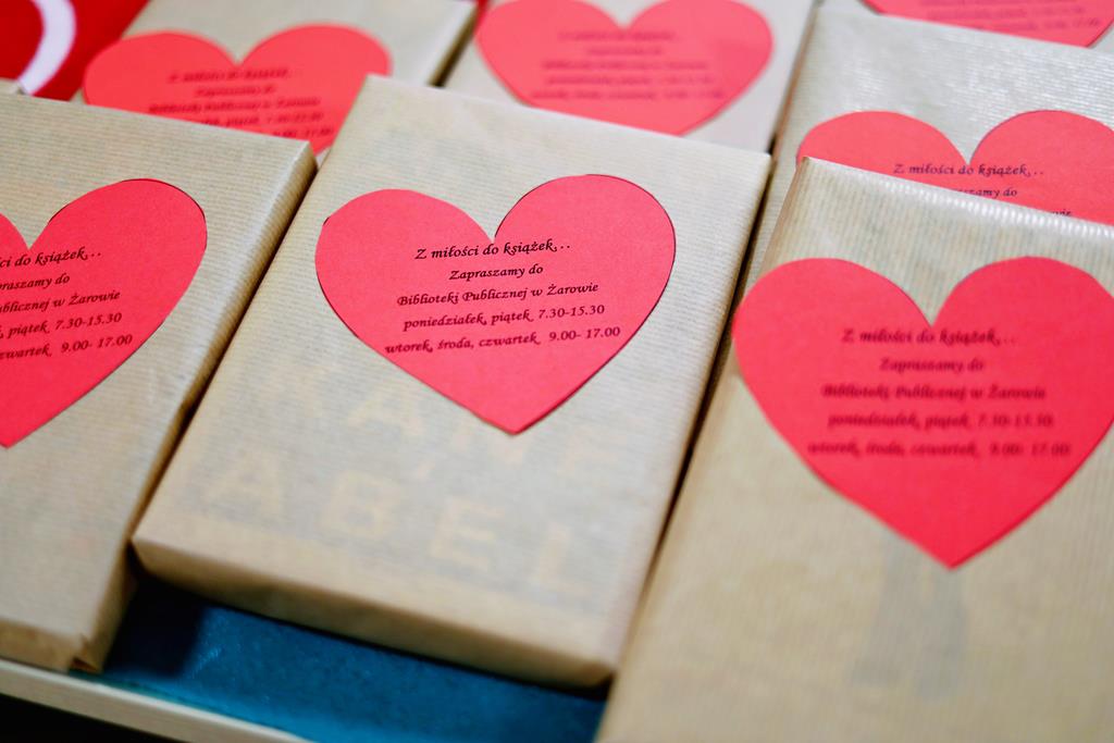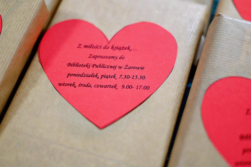 13 lutego – z okazji zbliżających się Walentynek Biblioteka Publiczna w Żarowie zorganizowała wiele atrakcji. Jedną z nich była akcja „Z miłości do książek…”, która promowała zarówno Bibliotekę, jak i książki. Podczas niej tradycyjnie już pracownice biblioteki wyruszyły na spacer po naszym mieście, rozdając mieszkańcom książki oraz lizaki w kształcie serduszek. Prezenty dawane były z sercem, zarówno tym dużym, tym troszkę mniejszym oraz całkiem malutkim mieszkańcom naszego miasta, co spotkało się z uśmiechem i życzliwym przyjęciem. W bibliotece czekały jeszcze kolejne niespodzianki takie jak Walentynkowe Zdrapki oraz okolicznościowa Sesja Zdjęciowa.