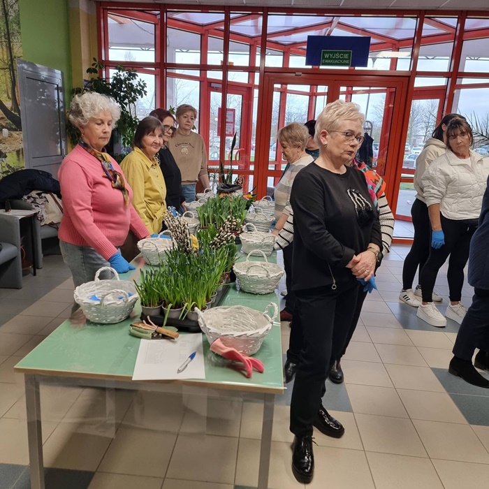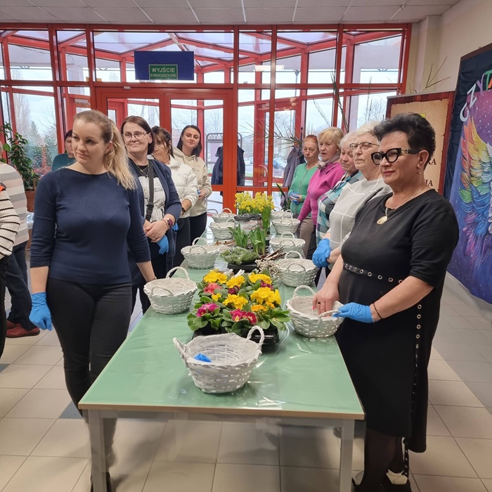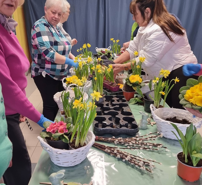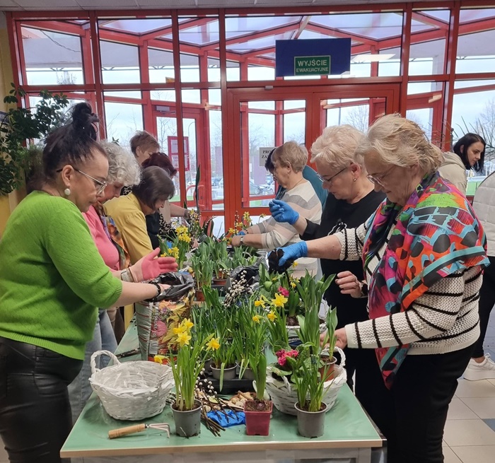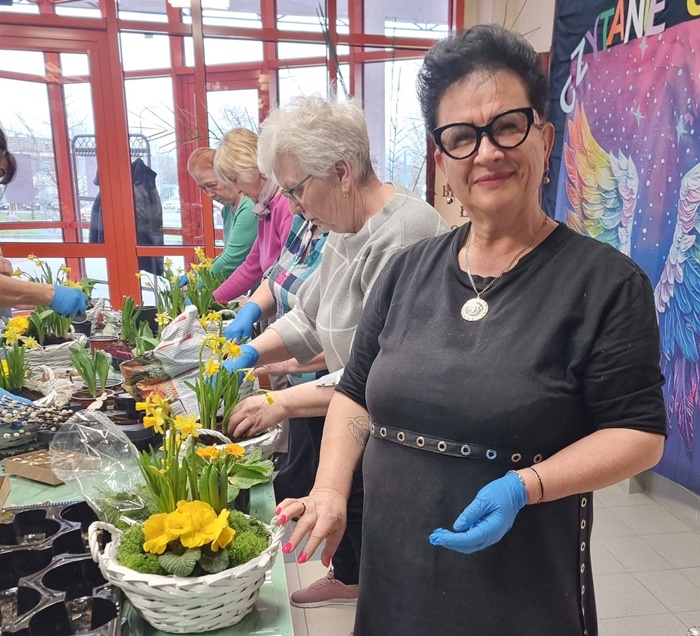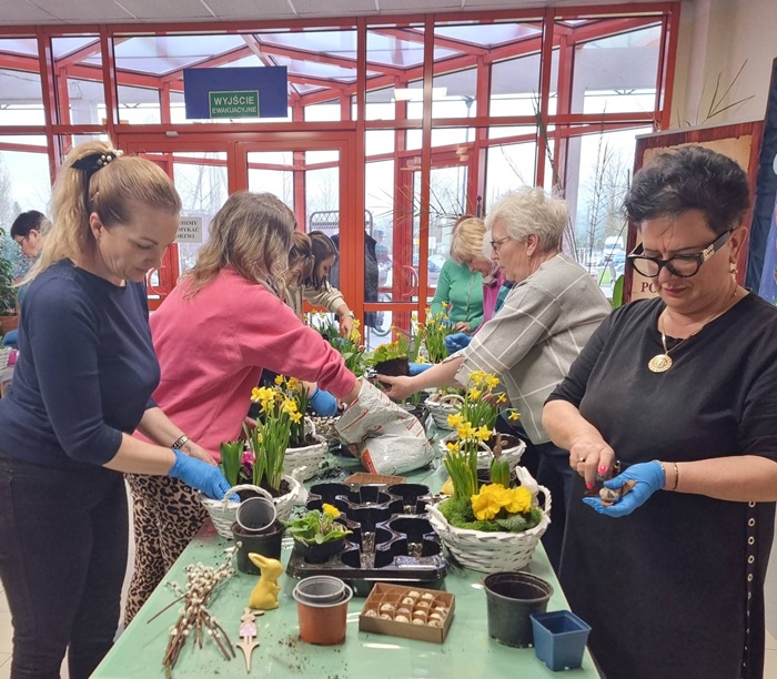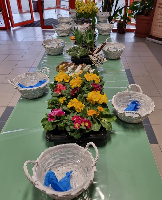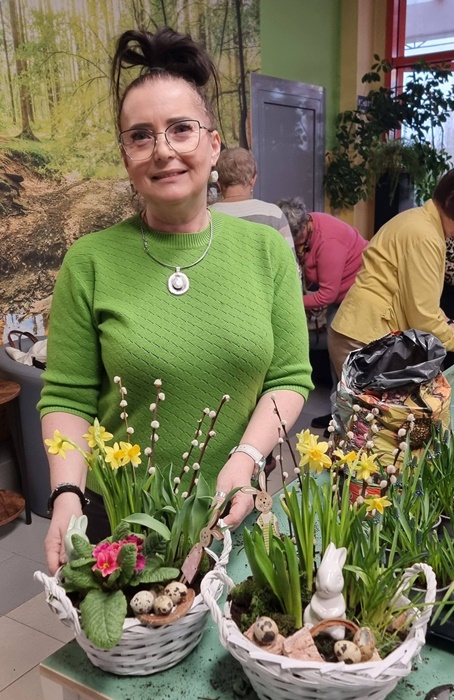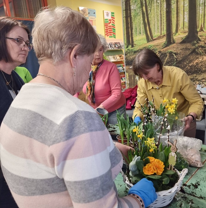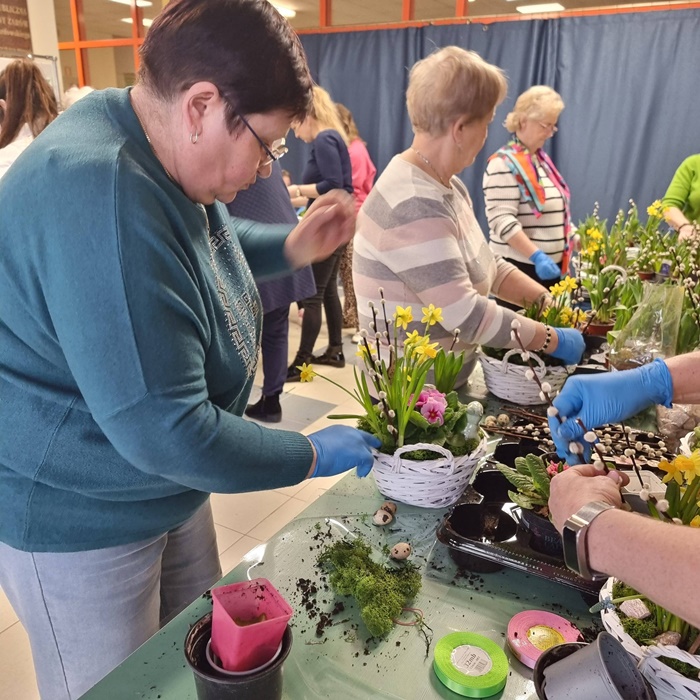 W bibliotece odbyły się warsztaty florystyczne dla mieszkańców, zorganizowane w ramach programu Polenergii „Gramy w zielone”. Wydarzenie miało na celu rozwijanie kompetencji twórczych oraz integrację społeczności lokalnej. Warsztaty prowadziła Pani Dyrektor biblioteki, zapewniając wsparcie merytoryczne oraz instruktaż na każdym etapie pracy. Uczestnicy przygotowywali wiosenno-wielkanocne kompozycje w koszyczkach, wykorzystując m.in. mini żonkile, szafirki, mini tulipany, hiacynty, prymulki, bazie oraz dekoracyjne zajączki i jajeczka. Zajęcia sprzyjały zdobywaniu praktycznych umiejętności florystycznych oraz aktywnemu spędzaniu czasu. W efekcie powstały estetyczne i starannie wykonane, przepiękne kompozycje, stanowiące wyraz zaangażowania uczestników oraz ich kreatywności. Realizacja warsztatów przyczyniła się do aktywizacji mieszkańców, a także wzmocnienia integracji społecznej i uczestnictwa w kulturze.