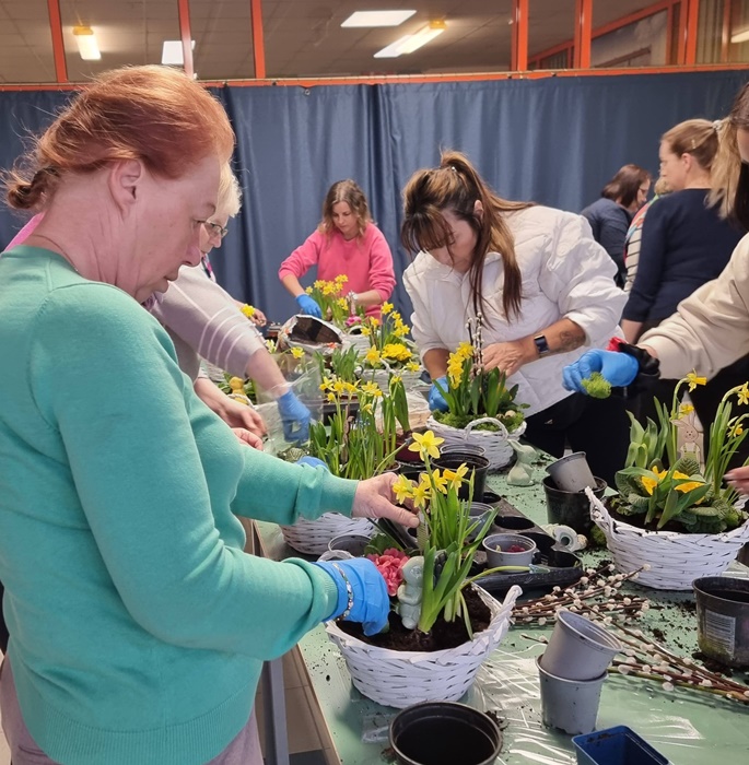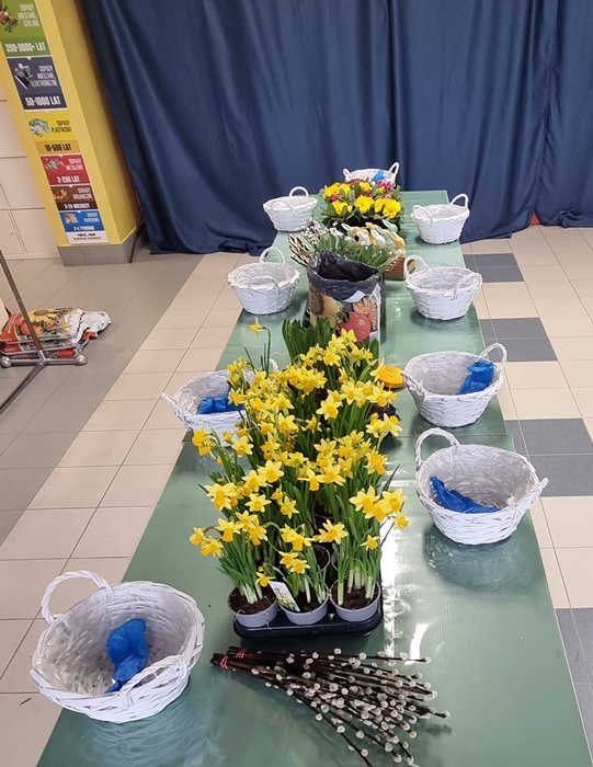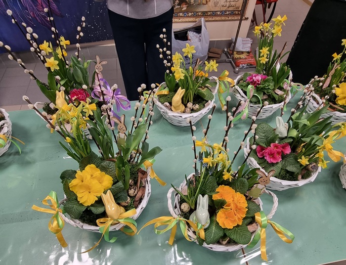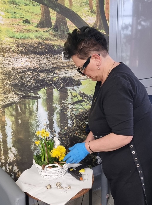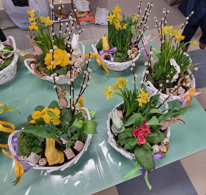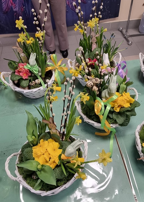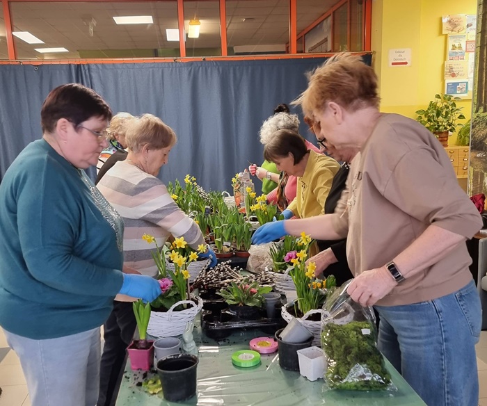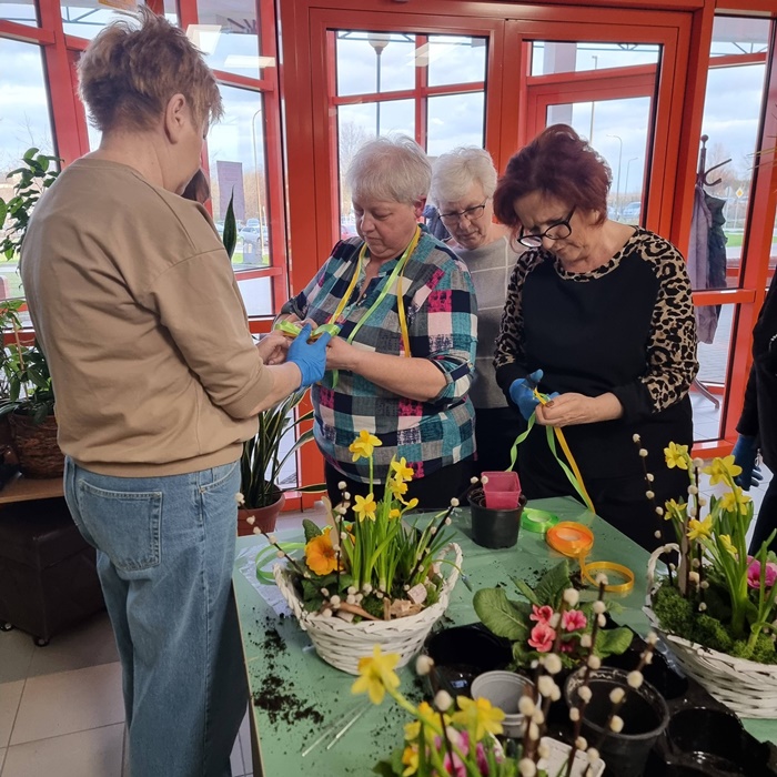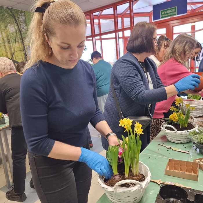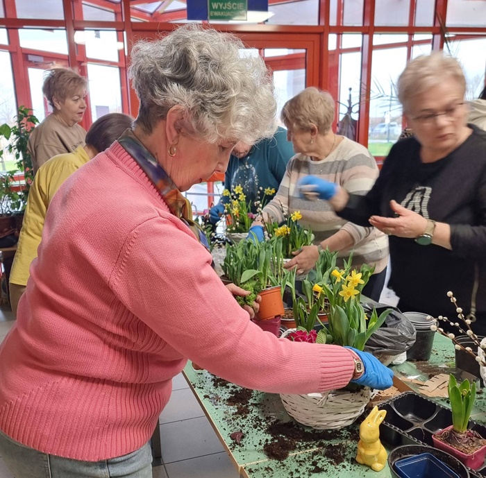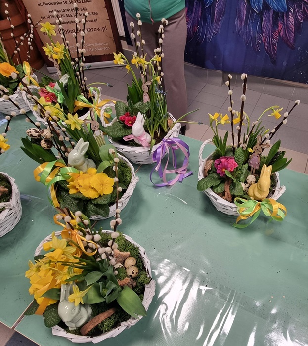 W bibliotece odbyły się warsztaty florystyczne dla mieszkańców, zorganizowane w ramach programu Polenergii „Gramy w zielone”. Wydarzenie miało na celu rozwijanie kompetencji twórczych oraz integrację społeczności lokalnej. Warsztaty prowadziła Pani Dyrektor biblioteki, zapewniając wsparcie merytoryczne oraz instruktaż na każdym etapie pracy. Uczestnicy przygotowywali wiosenno-wielkanocne kompozycje w koszyczkach, wykorzystując m.in. mini żonkile, szafirki, mini tulipany, hiacynty, prymulki, bazie oraz dekoracyjne zajączki i jajeczka. Zajęcia sprzyjały zdobywaniu praktycznych umiejętności florystycznych oraz aktywnemu spędzaniu czasu. W efekcie powstały estetyczne i starannie wykonane, przepiękne kompozycje, stanowiące wyraz zaangażowania uczestników oraz ich kreatywności. Realizacja warsztatów przyczyniła się do aktywizacji mieszkańców, a także wzmocnienia integracji społecznej i uczestnictwa w kulturze.